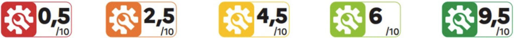 There are 5 levels of repairability of products in the form of 5 pictograms that allow professionals to label their product according to the calculation: